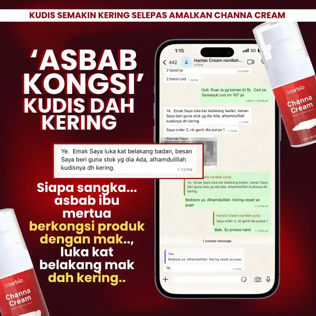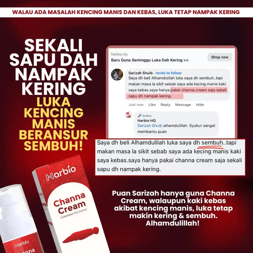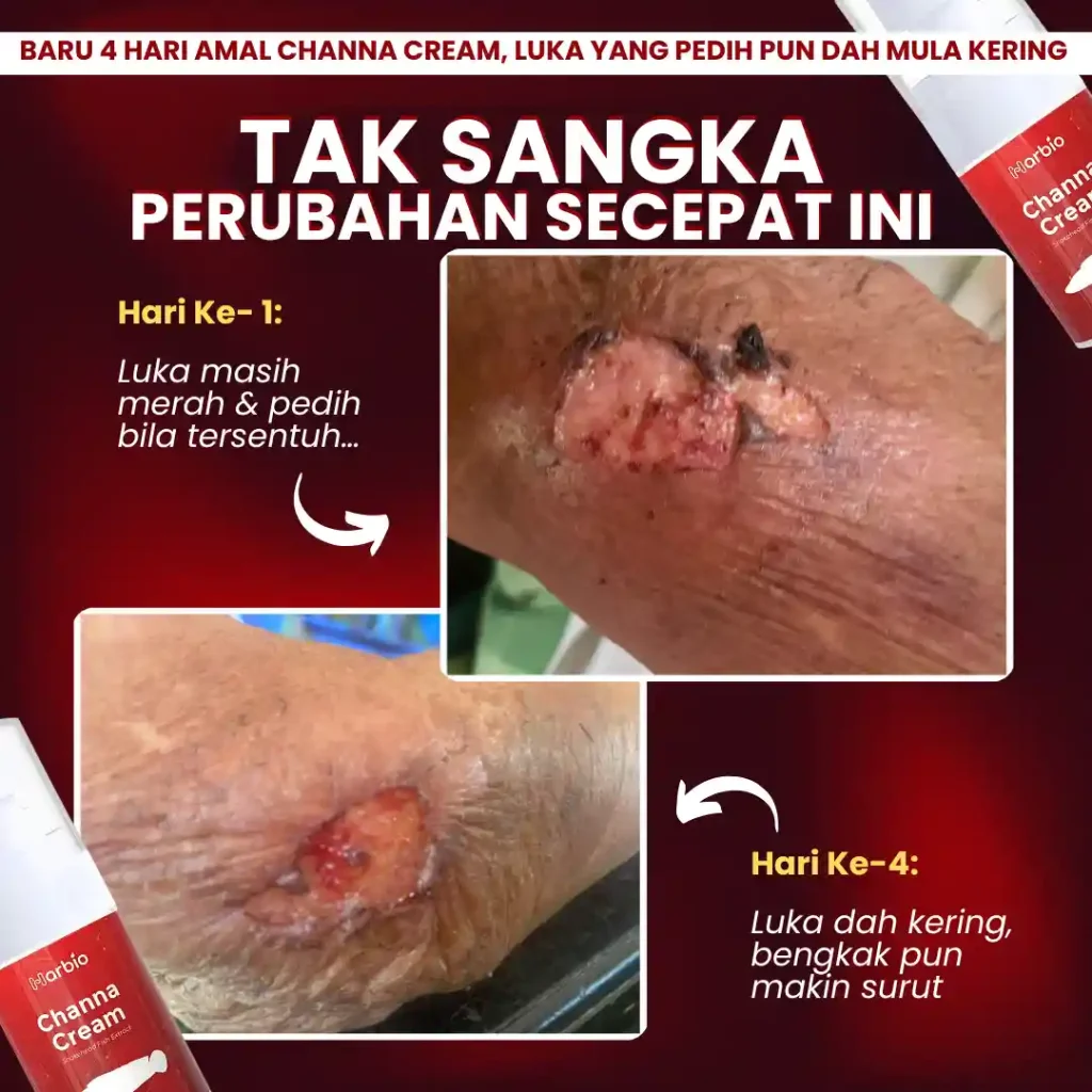 Amalkan Channa Cream hari ni dan nikmati luka makin kering & hidup lebih bebas , Nak cepat kesan , ambil sekali dengan tablet Channa Plus