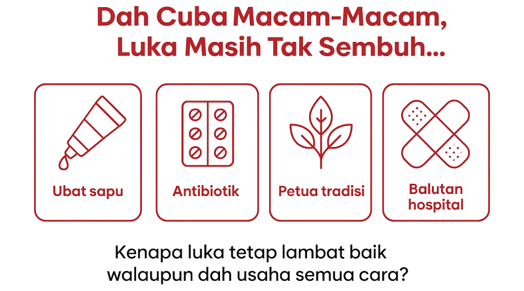 Ubat sapu, antibiotik, petua tradisi tapi luka tetap tak sembuh